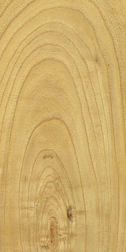 特徴:全体に淡い黄褐色を呈しており、辺心材の境目は不明瞭である。木理は通直で、肌目も緻密。やや重硬で加工性には難はあるが、靱性が高く、板材はケヤキの代替材として用いられることが多い。耐朽性は大